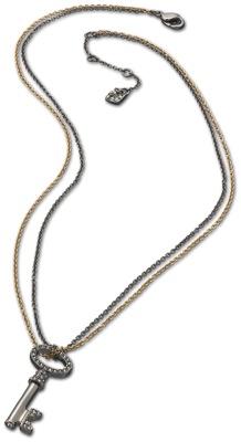 Colgante con llave de cristal pavé y chapada en rutenio en una cadena doble chapada en rutenio y oro.