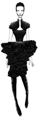 Sobre la base de un bustier, de ligero toque 50´s, acentuando la figura pero sin ceñir el talle, se estructura toda la colección, con vestidos cortos monocromos de capas de chiffon superpuestas que dan ligereza a una silueta.