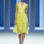 Patrones ochentenos, con mangas que parecen remangadas y elástico en la cinturilla. Destellos de purpurina sobre blanco, negro y rojo.