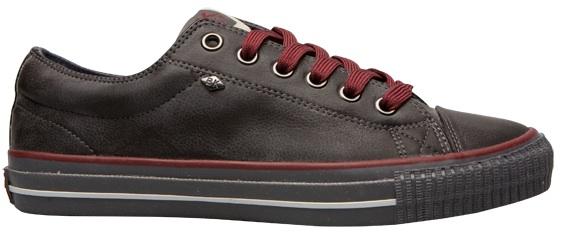Zapatilla de corte bajo para hombre, de diseño elegante y urbano. Confeccionada en nappa cepillada, de puntera reforzada, combina tonos marrones y rojos.