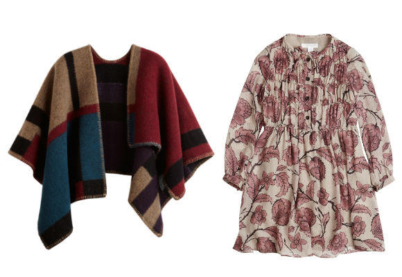 Abrigos de vellón de oveja, ponchos estampados, el clásico trench de la firma que se combinan con los coloridos vestidos.