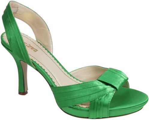 Original sandalia de fiesta en raso verde esmeralda con un tacón de 5cm muy cómodo.