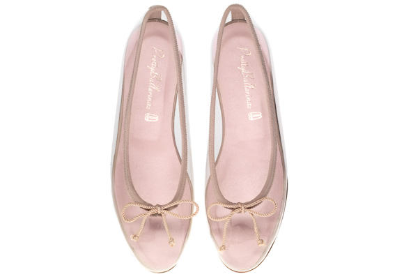 Bailarina de vinilo transparente y lazada en la punta, con una escotada horma, se caracterizan por su ligereza.