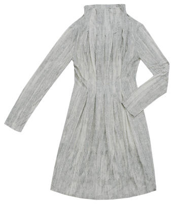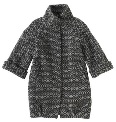Texturas grises y negras para un look de colegiala sombría. Silueta ligera y corta, con tejidos cálidos.