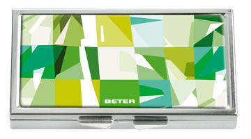 De pequeño tamaño y atractivo diseño, Beter propone una cajita con pinza y espejo, con diseño de colores en formas geométricas que incorpora pinza para depilar y espejo.