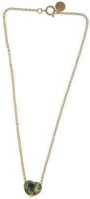 El mítico corazón rojo y con estampados geométricos de diferentes colores, ambos con cadenas doradas.