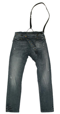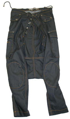 Originales braguetas, vistas, con cierre de tachuelas, torcidas y hasta la rodilla.
