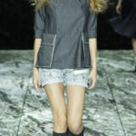 Materiales como el charol, nylon y terciopelo vuelto, y una paleta de colores que recuerda el espíritu de los años 70, combinados de ciruela y rosa palo, negro y color crema o azul oscuro y gris.