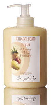 El jabón líquido delicado a base de Vitaminas de fruta amarilla y aceite de oliva para lavar las manos tiene una consistencia cremosa, perfume tropical y ayuda a mantener suave la piel. Su fórmula, testada dermatológicamente, contiene un derivado del aceite de oliva con acción emoliente, proteínas del trigo y extractos de melocotón, piña y papaya, ricos en vitaminas, que ejercen una acción nutritiva y tonificante.