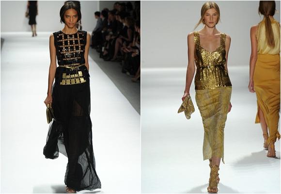 El oro y lo dorado están de plena tendencia, eso es incuestionable. Pero ya no sólo lo llevaremos en pequeñas dosis en diferentes accesorios. Ahora, los tejidos dorados se imponen en vestidos e incluso trenchs… ¡Una tendencia de moda para espantar a la crisis, sin duda!