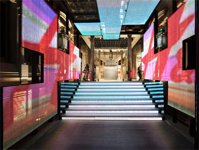El edificio, antigua sede de Catalana de Gas, es un diseño original de Domènech i Estapà, que ha cambiado de la mano de H&M y Estudio Mariscal, a un espacio único donde conviven lo nuevo y lo antiguo.