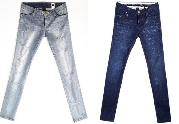 Los cristales son colocados y retocados a mano, una vez lavado el pantalón.