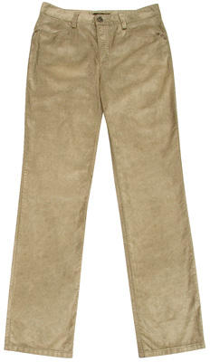 Pantalón recto de pana color beige nacarado con corte al estilo denim, botón y remaches dorados.
