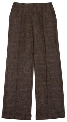 Elegante pantalón de lana con grandes cuadros príncipe de Gales en tonos marrones.