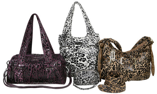 La gama de bolsos Indira se inspira en el estilo tribal-africano, realizado en microfibra con estampado de leopardo combinado con efecto metalizado.