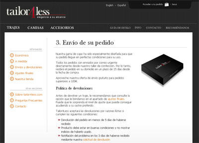 Navegar por su web es muy fácil, y realizar el pedido también, ya que es la propia página quien te va dando pasos que debes rellenar para confeccionar tu prenda.