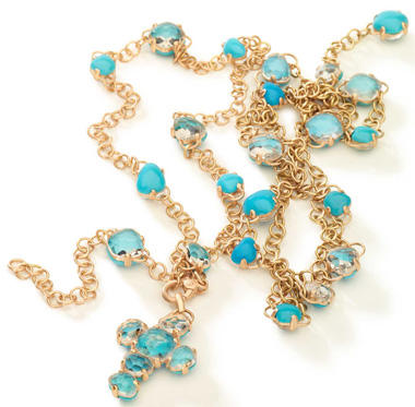 Las joyas Capri tienen reflejos tornasolados que se basan en la bonita isla, en tono verde azul sobre oro rosa.