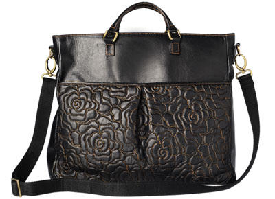 Es una línea de maletines en piel bordados a mano reinventando los dibujos de rosas.