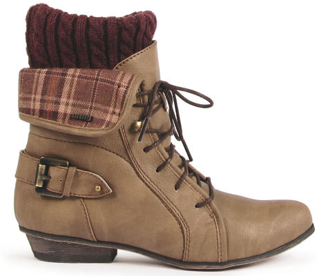 La bota de media caña folk con hebillas y correas, con borreguito y una mezcla de texturas y colores.