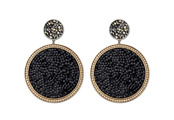 Swarovski propone una combinación de materiales retro y chic, joyas en negro y dorado.