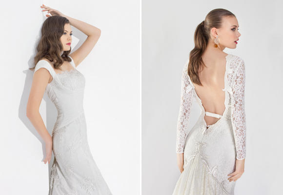 Vestidos formados por sedas, chantilly y veladuras que aportan volúmenes diáfanos con formas sólidas.