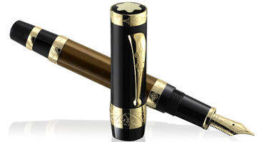 Digna de un regente y mecenas, la "Montblanc Patron of Art Edition François I" es una majestuosa joya de la escritura compuesta por un resplandeciente ojo de tigre, noble laca de color negro azabache y complementos dorados como la ornamentación de la corte.