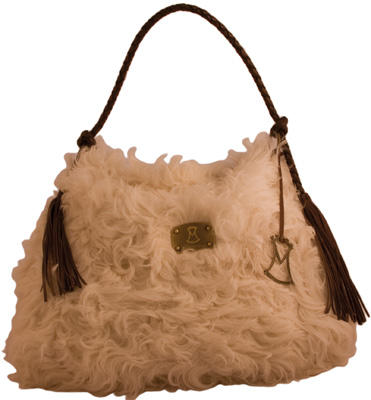 Confeccionado con pelo largo de oveja, en color blanco y negro, como detalle borlas de piel.