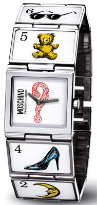 Los símbolos icónicos de Moschino como Luisa la oca, el corazón y el signo de interrogación caracterizan la nueva colección de relojes Moschino CheapAndChic para hombre y mujer.