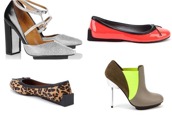 Una de las tendencias de calzado de este otoño es poco menos que extraña… Son los zapatos en los que el tacón no coincide en su forma con el resto del zapato. Para resaltar aún más la asimetría, el tacón o cuña suele ser de color muy diferente al calzado, a menudo negro en el calzado de colores.