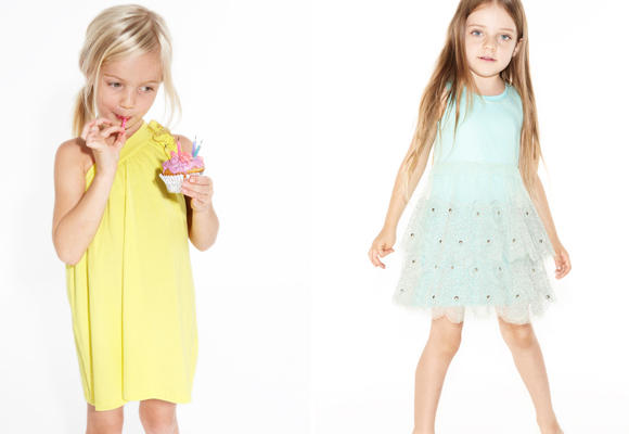 Para ellas vestidos asimétricos muy veraniegos, con detalles fruncidos en tirantes o cintura.