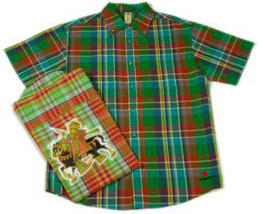Camisas de manga corta con cuadros multicolores en tonos ácidos, como verdes y amarillos.